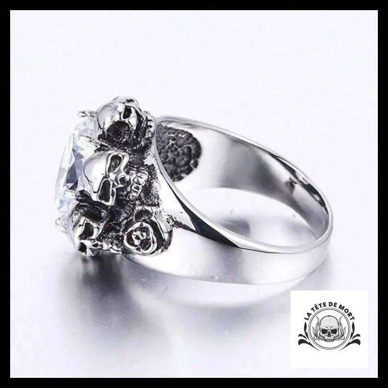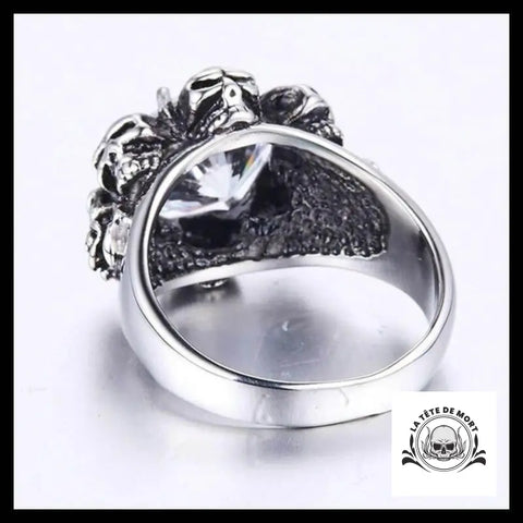 Une pierre scintillante comme vous n'en avez jamais vu ailleurs se présente à vous avec cette magnifique bague ! Entouré de plusieurs crânes, ce joyau semble bien protégé !