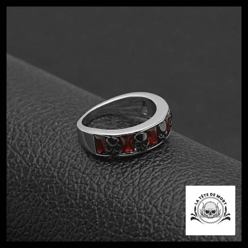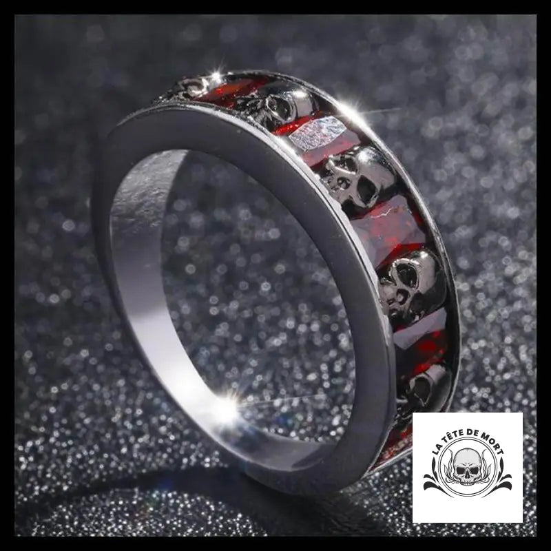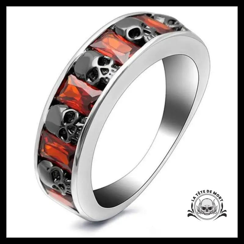 Défie la Mort en portant cet Anneau Tête de Mort Homme de couleur Rouge et Noir. Il apporte une touche de danger et d'excitation à tes tenues et te fait sentir comme au casino. Prends le risque et vois où cela te mène.