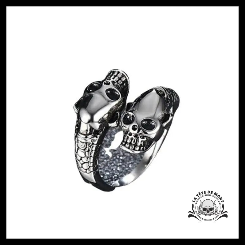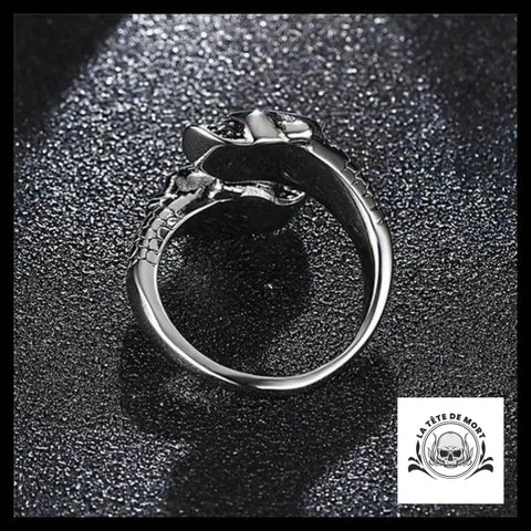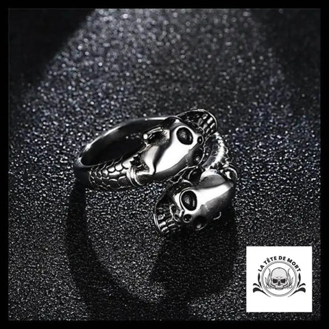 Anneau tête de mort serpent. Chevalière tête de mort serpent.