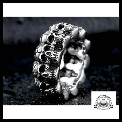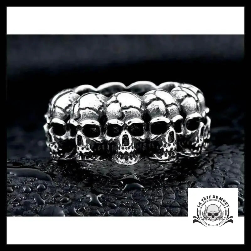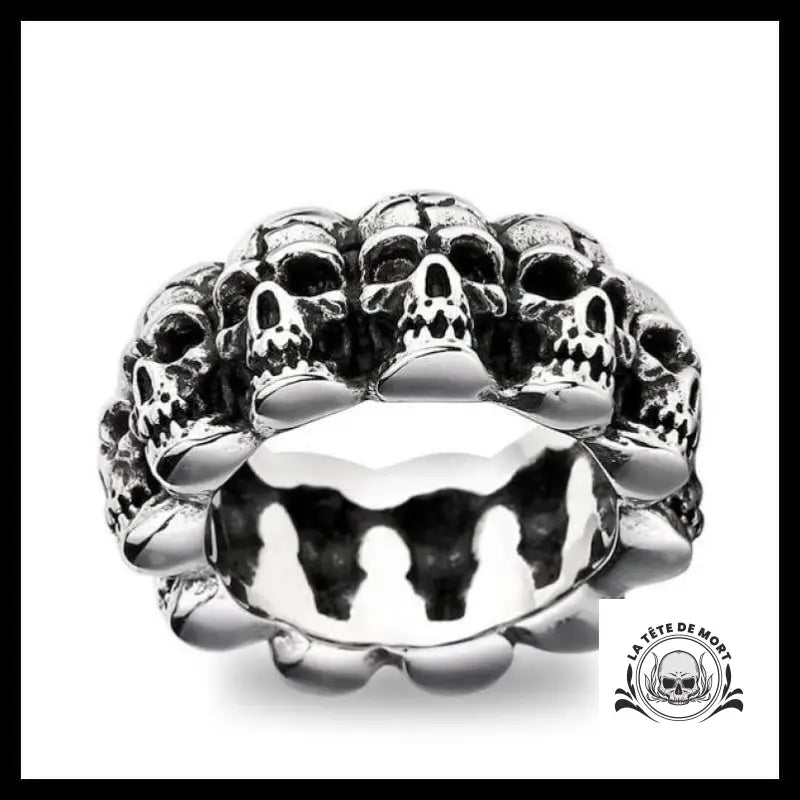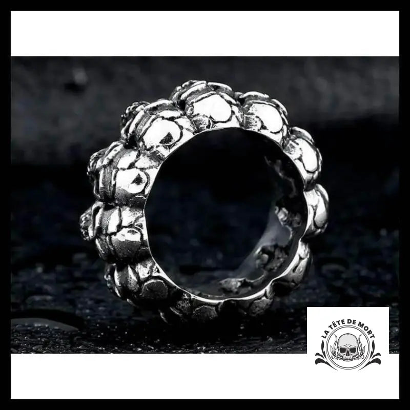 Cette Bague de Biker en Acier présente un design unique de crânes fissurés martelés. Elle est conçue pour les personnes audacieuses et confiantes en leur style. Notez que cette bague a été façonnée exclusivement pour les plus courageux.