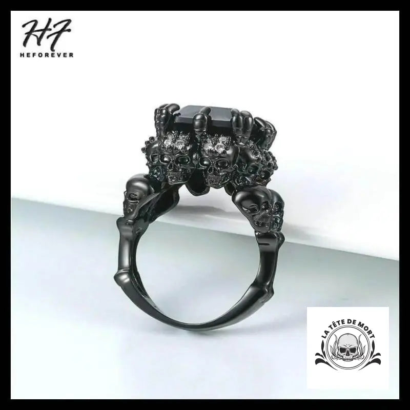 Sublime bague ! Vous aurez à votre doigt une véritable couronne royale qui s'érige ! Les têtes de mort s'assemblent les unes au dessus des autres pour former un ensemble plus que majestueux qui vous ira à merveille !