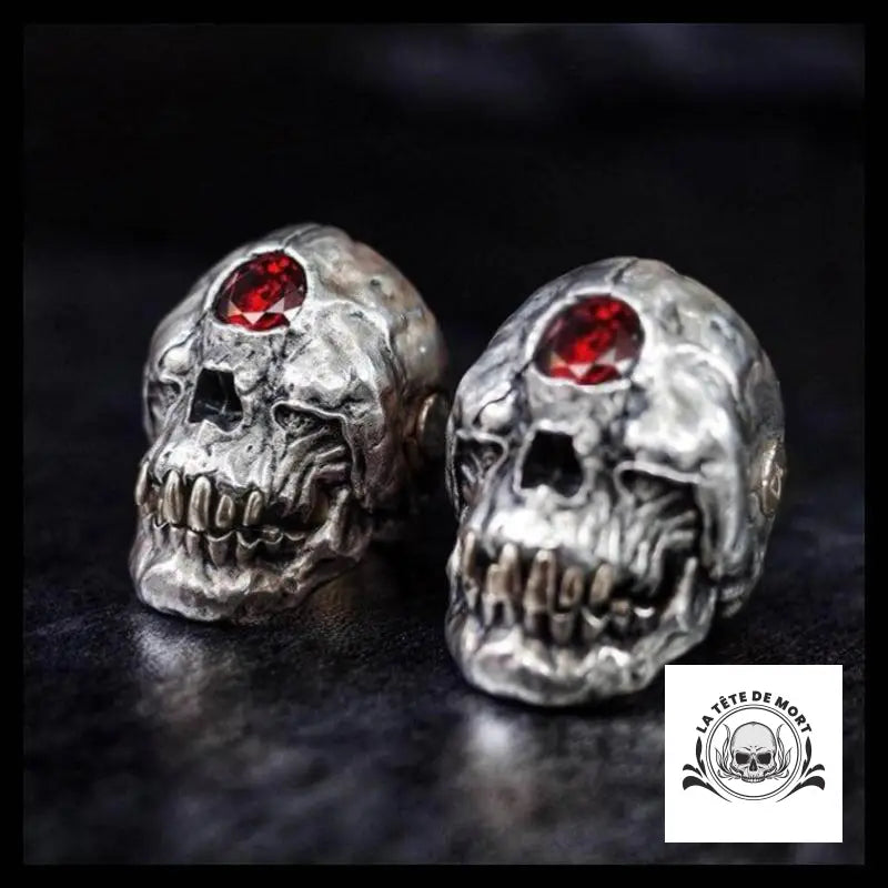 Impressionnante cette bague cyclope ! Un rubis rouge sang en guise d’œil, des dents toutes plus acérées les unes que les autres, ce crâne risque de vous en faire voir de toutes les couleurs si vous osez le défier !