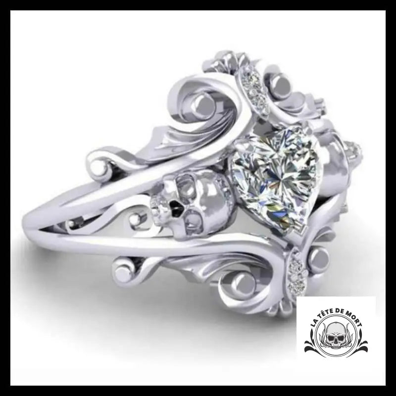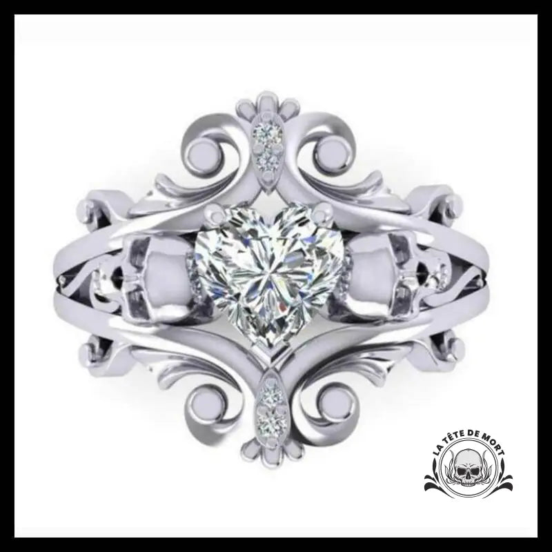 Incroyable ! Ce bijou en fera rêver plus d'une ! Une véritable bague de princesse aux ornements classes, raffinés et élégants ! Un petit joyau en forme de cœur entouré de deux crânes pour créer un ensemble harmonieux et divin !