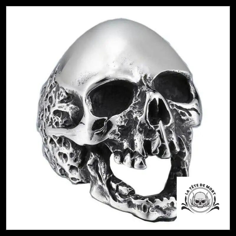 Cette bague satanique a été endurée les abus du temps et probablement d'autres facteurs. Les crânes qui ornent la bague démontrent clairement que tout est temporaire.