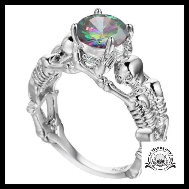 Cette Bague à Squelette est ornée d'un imposant Diamant soutenu par deux créatures osseuses. Ce joyau admiré par ses fervents admirateurs te garantira de rencontrer du succès.