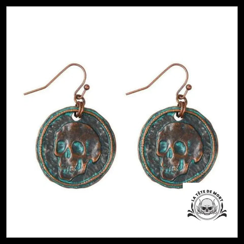 Très originales ces boucles d'oreilles, elles font penser à des pièces de monnaie retrouvées sur un site archéologique, on dirait du métal vieilli par le temps, vous allez être fière de les porter!