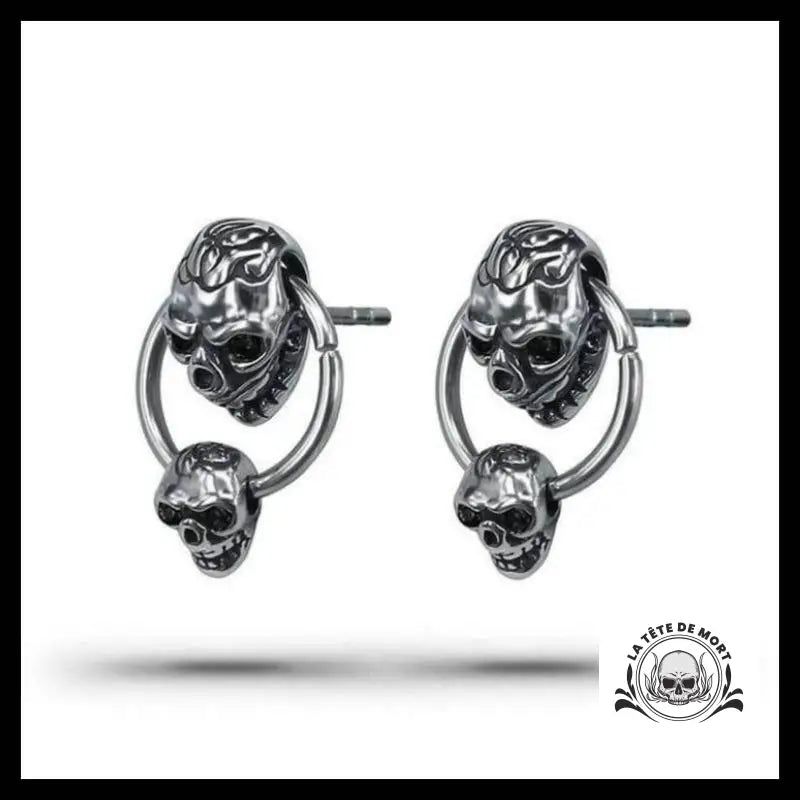 Vous recherchez des Boucles d'Oreilles pour homme à la fois rock et uniques ? Alors vous êtes sur le bon site. Ce duo de têtes de mort équipées d'yeux rouges est idéal pour renforcer votre look.