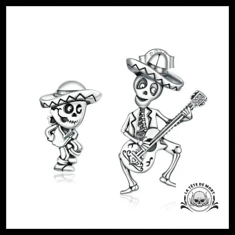 Magnifiques boucles d'oreilles asymétrique en argent 925 d'une finition parfaite et des détails minutieux. Ils ont l'air de faire la fête, l'un tient sa guitare et semble parti dans un morceau endiablé sur lequel son copain ne peut résister de danser !