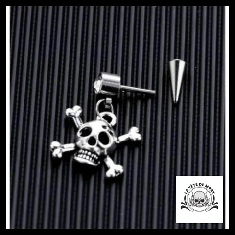 Boucles d'oreilles têtes de mort dont le style rappelle un drapeau de pirate, les tiges décorées d'un strass ont une fermeture à vis comme un piercing, vous ne risquez pas de les perdre !