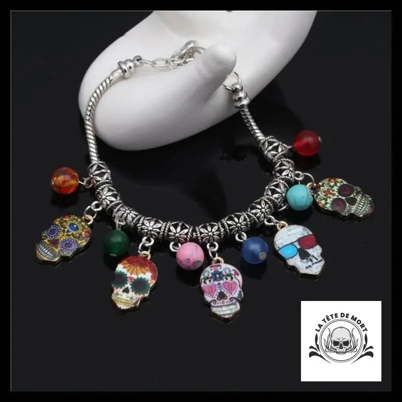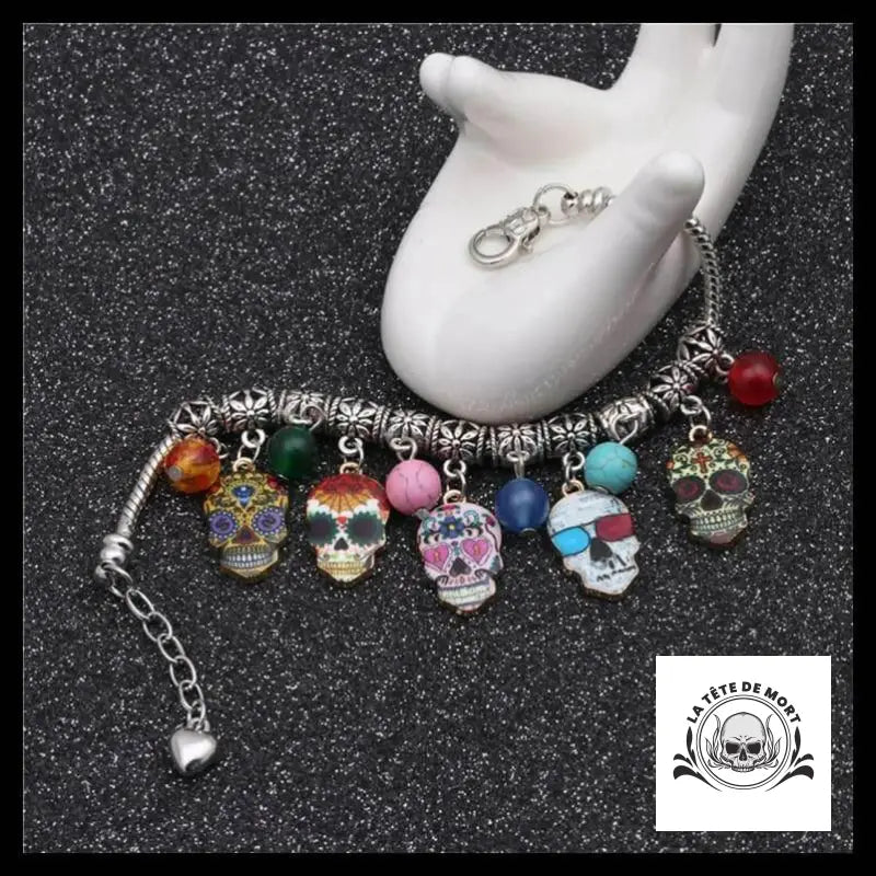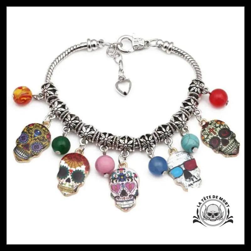 Ce bracelet est d'une beauté exceptionnelle ! Ses pendentifs sont tous plus jolis les uns que les autres ! De qualité et résistant, ces petites têtes de mort aux lunettes de soleil originales sont séparées de belles perles ! Un bracelet coloré qui vous ravira !