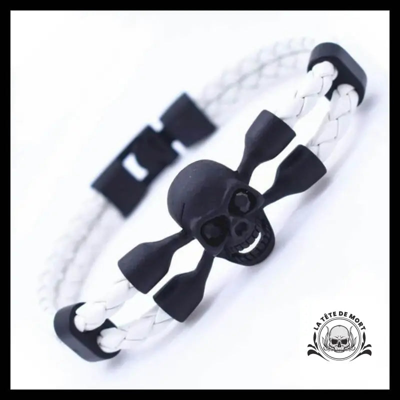Bracelet de cuir tressé à la main. La tresse de cuir est disponible en 2 couleurs : noir et blanc.