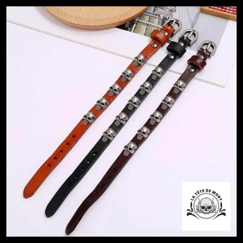 Un très joli bracelet brun clair s'offre à vous ! De multiple têtes de mort le parcourent sur tout son long pour créer un bracelet unique ! Choisissez-le sans hésiter !