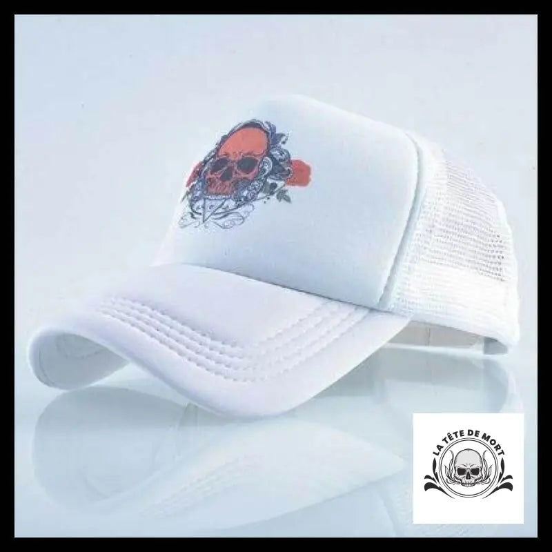 Casquette réglable, impression tête de mort classique.