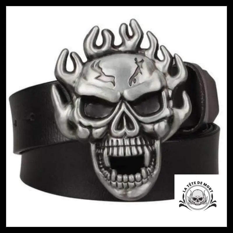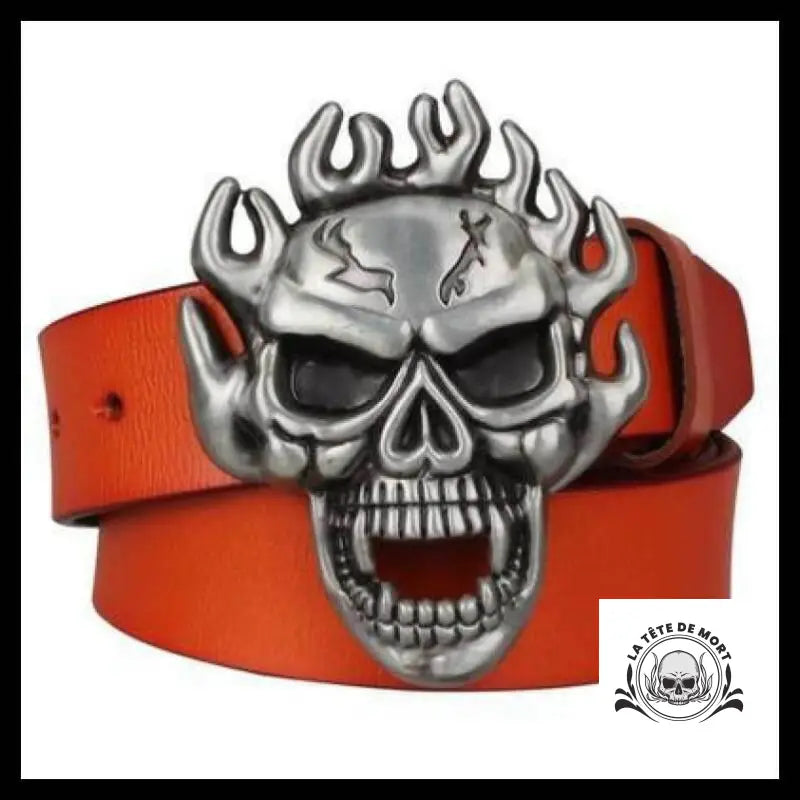 Ceinture tête de mort enflammée. Ceinture tête de mort en flamme.
