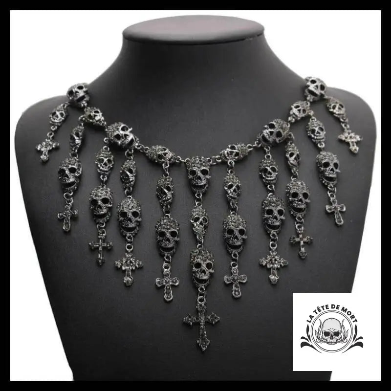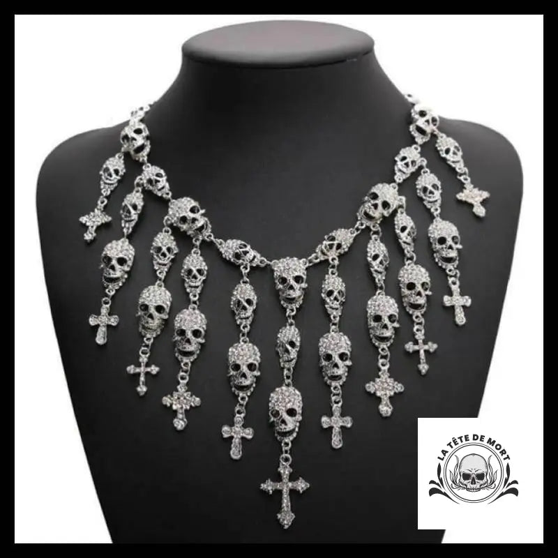 Magnifique collier avec pendentifs en forme de crâne et de croix