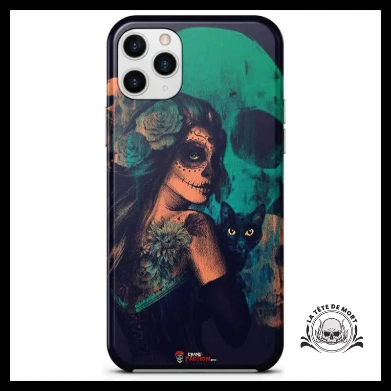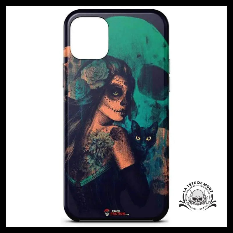 Donnez à votre téléphone un style unique avec cette illustration de la faucheuse mexicaine. Son regard malicieux ajoutera une touche de malice à votre appareil. Ne soyez pas effrayé de montrer votre passion pour la mort.