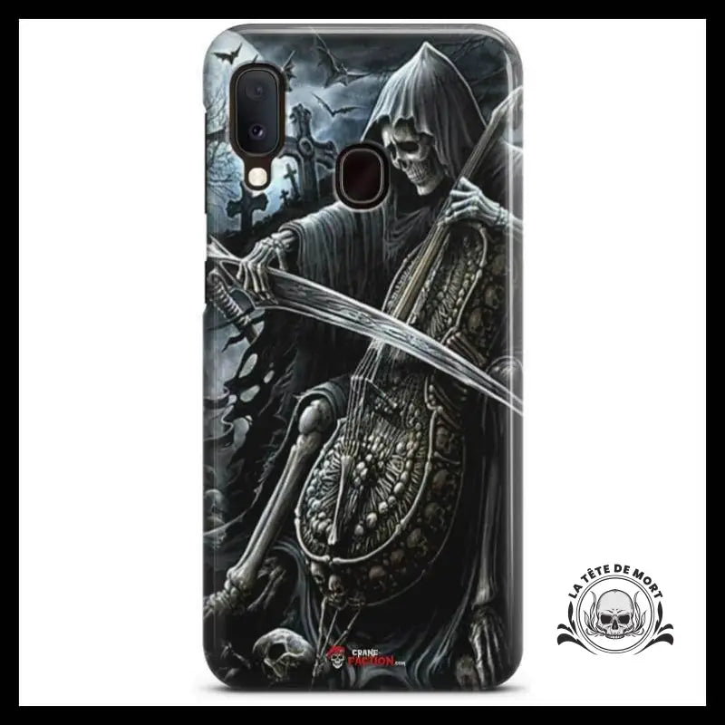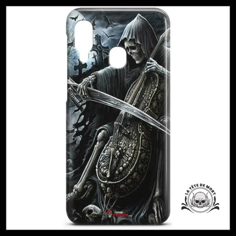 Avec sa contrebasse sortie tout droit des tréfonds de la terre, la faucheuse prépare son passage dans le monde des vivants. Cette coque squelette musicien est à l’image de ton caractère de killer. La mort fait partie de ton quotidien. Fais-le comprendre à tous !