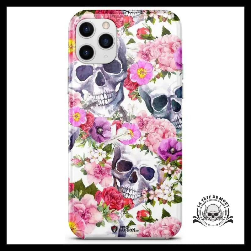 Cette coque iPhone est ornée d'une tête-de-mort joyeuse et de fleurs, qui apporte une touche d'élégance et de singularité à ton smartphone. Elle permet de faire ressortir ta passion pour la mort avec subtilité.