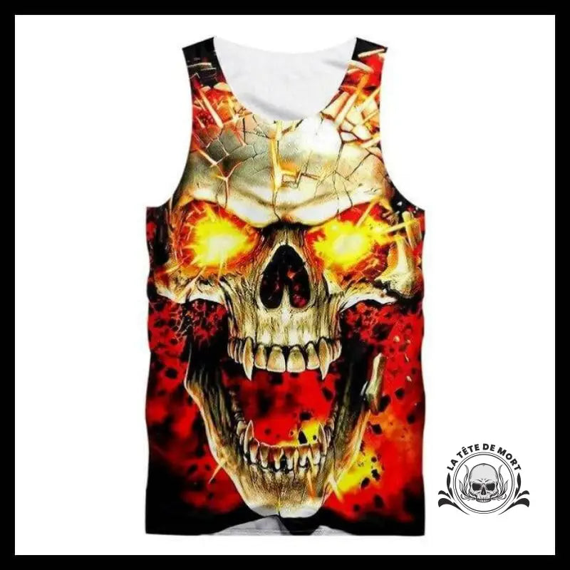 Cette tête de mort démon est le symbole de l'agitation, de la rancœur, de la colère divine et de la rage. Ce débardeur crâne est magnifique et saisissant.