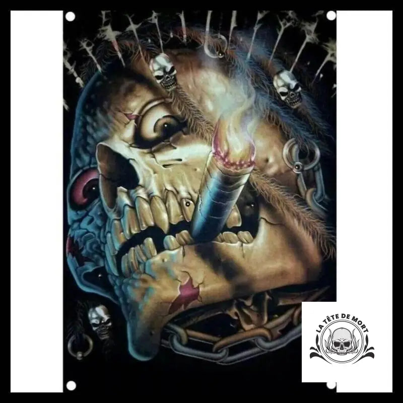 Si tu es à la recherche d'une décoration à la fois originale et effrayante, ce drapeau représentant un crâne de zombie est exactement ce qu'il te faut ! Il te permettra de créer une ambiance unique qui te correspondra parfaitement. Ne cherche plus, ce drapeau est fait pour toi !