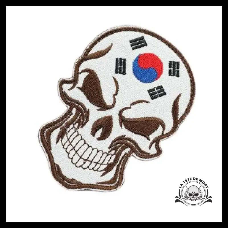 Cette tête de mort blanche au regard perçant est un symbole de la Corée du Sud, alliant insolence et style. Son design unique permet de la personnaliser sur n'importe quel type de tissu, pour un look original et affirmé.