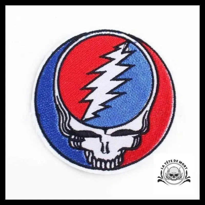 Tu peux maintenant combiner les deux forces complémentaires du rouge et du bleu, du jour et de la nuit, en optant pour ce patch tête de mort bleu blanc rouge surpuissant !