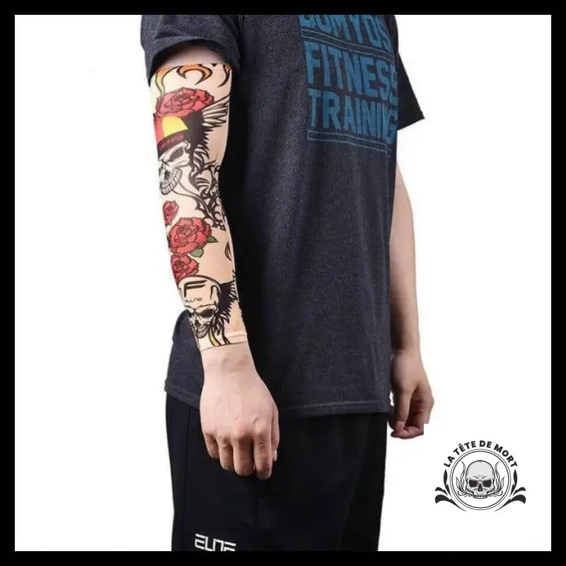 Si vous avez toujours eu le désir d'arborer un tatouage, alors cette manchette tatouage fausse crâne est faite pour vous ! Avec son mélange de motifs tels que le crâne, les roses et les flammes, cette manchette élastique offre une esthétique remarquable.