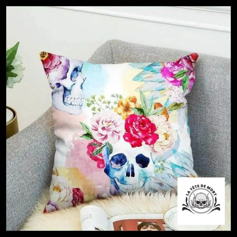Cette magnifique taie d'oreiller vous transportera dans bouquet de fleurs ! Elle embellit la tete de ce crâne ! Un côté chic pour votre style !