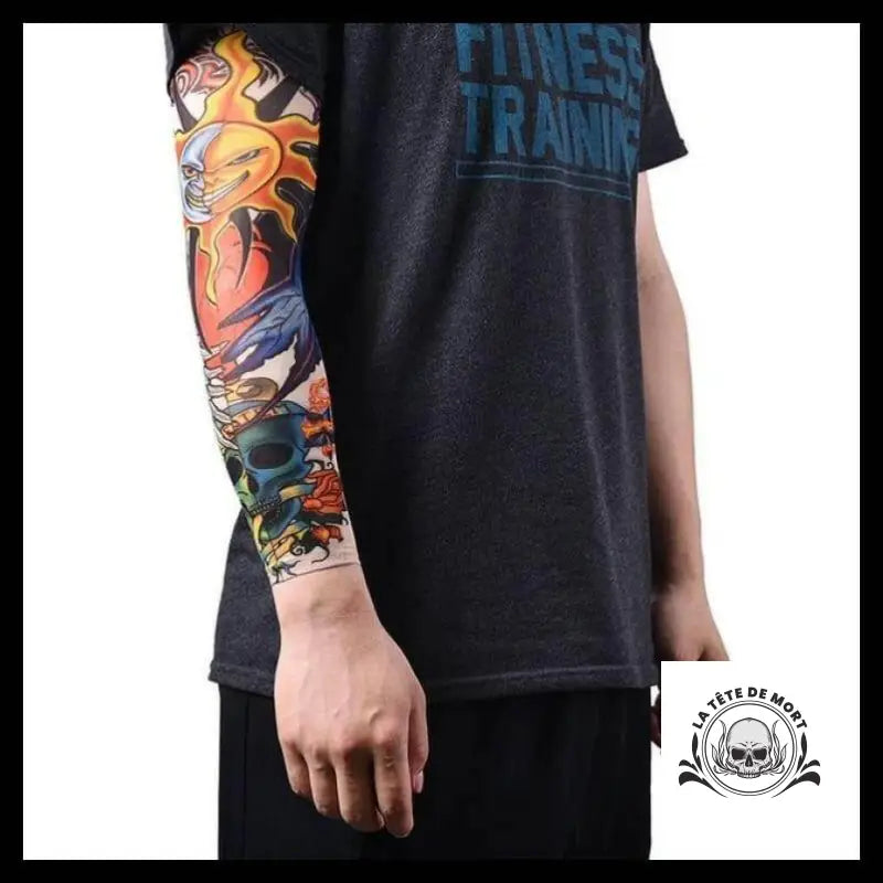 Épate tes amis avec un look totalement tatoué grâce à cette manchette de faux tatouage en tête de mort pour bras. Cette pièce unique suscitera l'étonnement et laissera sans voix tous ceux qui la verront.