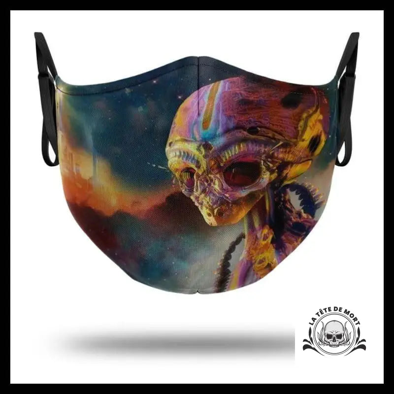 Offrez-vous la présence rassurante de ce petit extraterrestre réaliste lors de vos sorties pour vous protéger. Profitez d'un magnifique masque tête de mort 3D aux couleurs chatoyantes qui ajoutera une touche d'originalité à votre look.
