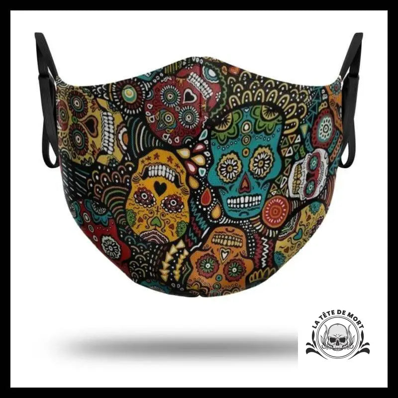 Ce masque à l'effigie d'un crâne cubanisto est un ajout élégant à tout look gothique. Il arbore de petits crânes mexicains qui apportent une touche unique et originale. Les couleurs utilisées sont à la fois chaudes et mystérieuses, renforçant l'atmosphère sombre de ce superbe accessoire.