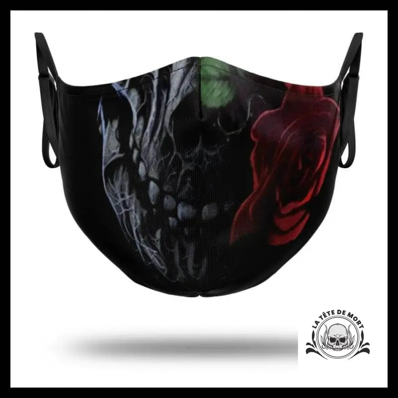 Ce masque crâne fendu arbore un design 3D époustouflant. Les teintes terreuses du crâne sont rehaussées par un contraste saisissant avec la rose rouge sang. Un look gore à couper le souffle !