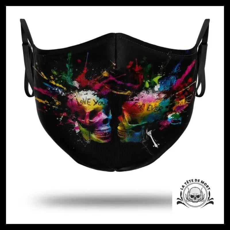 Exprime ta passion de manière distinctive avec ce masque de style punk. Les couleurs vives se détachent magnifiquement sur le fond sombre. Amour éternel !