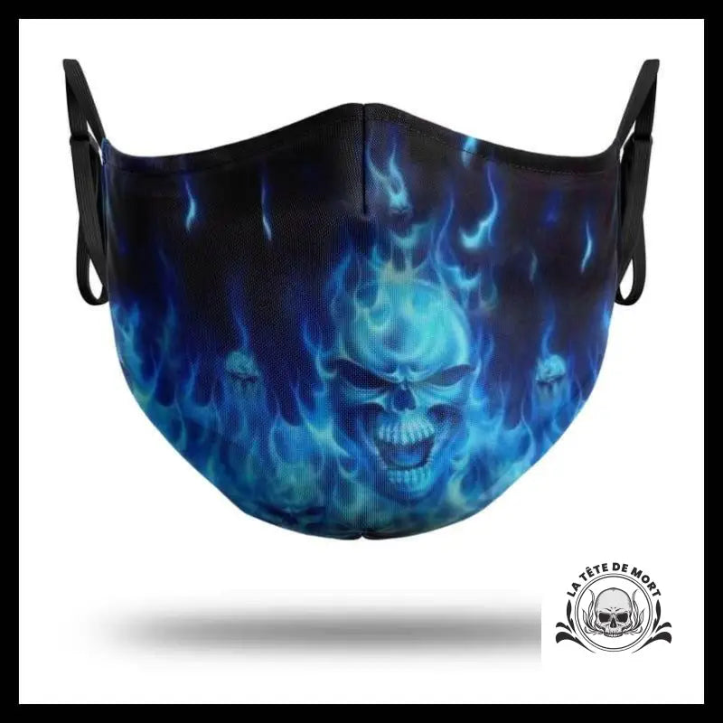 Le masque de protection en tissu noir arbore un design élégant de crâne composé de papillons. Ce modèle est notre plus léger en termes de masques tête de mort.Ce crâne effrayant est illuminé par des flammes bleues dignes de l'enfer. Ce masque punk est parfait pour égayer ta sortie nocturne en t'éclairant le chemin.