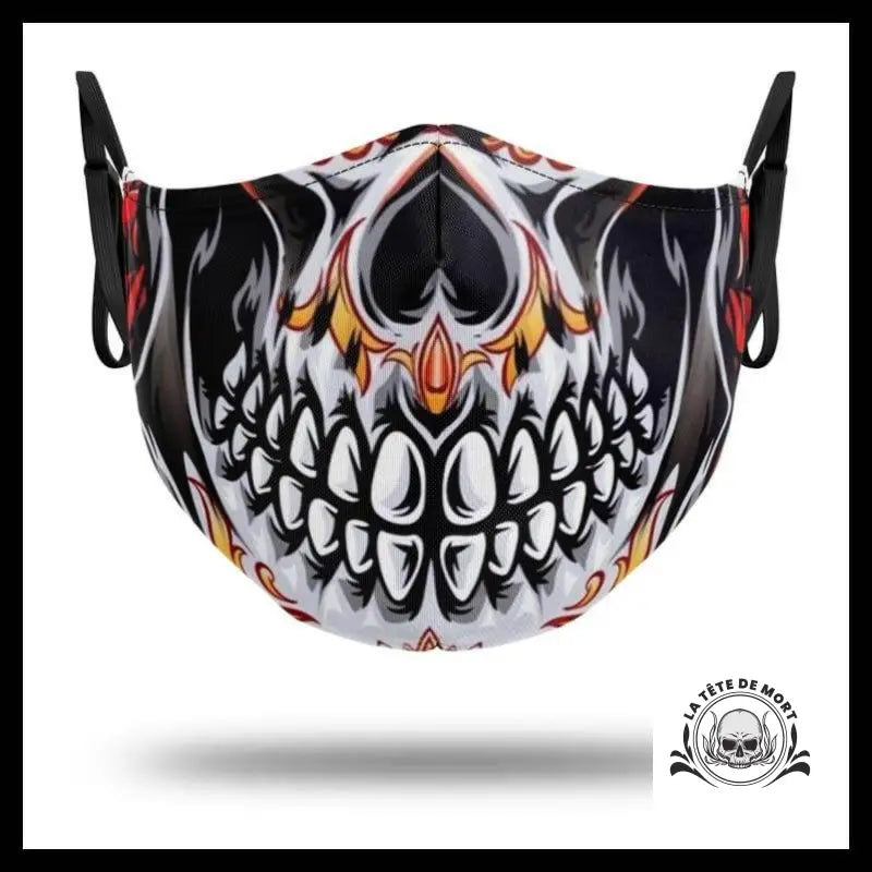 Ce masque rock and roll est orné de symboles mortels époustouflants. Le crâne enflammé donnera à ton style une touche de dangerosité inégalée.