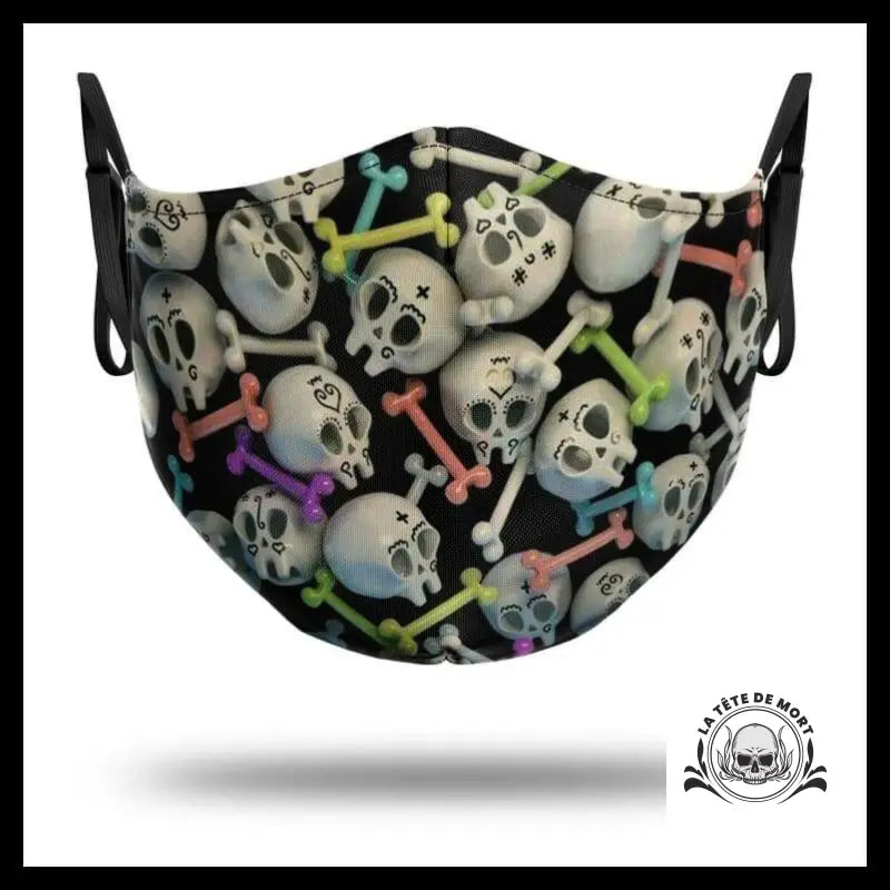 Ce masque tête de mort en 3D est unique et magnifique. Ajoute une touche de singularité à ton look avec ces petits crânes en 3D qui paraissent immergés dans leurs propres os.