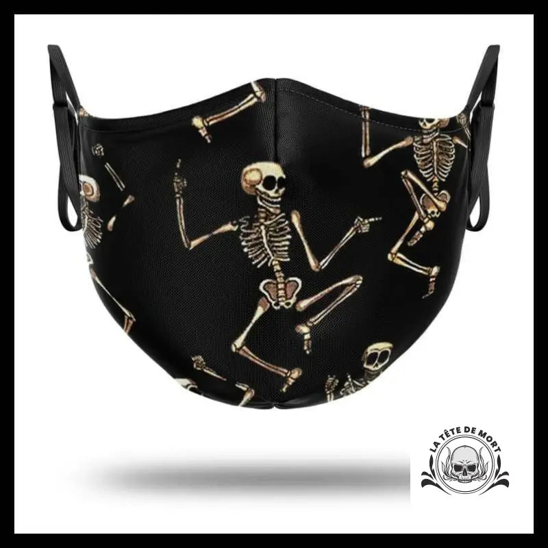 Ajoutez une touche de mortel à votre style avec notre design de squelettes élégant et sa danse macabre. Souriez à la vie en portant fièrement notre masque tête de mort, qui affiche avec élégance ces esprits.