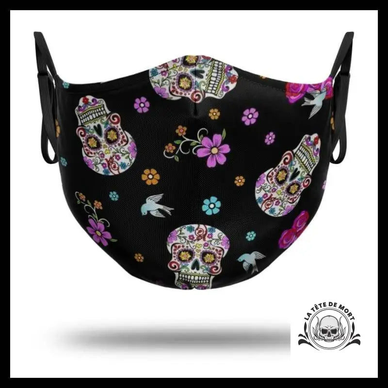 Nous te présentons ce masque à tête de mort cubanisto doté de couleurs vives et éclatantes. Il est orné d'une jolie explosion de couleurs et de fleurs pour un style époustouflant !