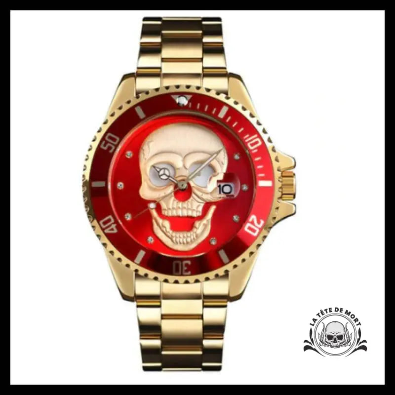 • Montre tête de mort waterproof. Montre tête de mort résistante à l'eau. Montre tête de mort étanche jusqu'à 30 mètres de profondeur.