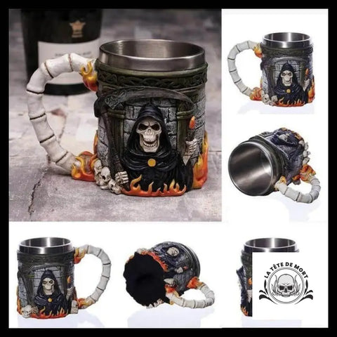 La Grande Faucheuse est inévitable lorsque le temps de notre départ arrive. Elle est la gardienne de l'Enfer, où les âmes sont destinées à aller après leur départ. Cependant, il existe un moyen de se protéger de son emprise grâce à un accessoire unique, le Mug Faucheuse de la Mort. Ce produit offre une alternative à la destinée funeste qui attend les âmes non préparées.