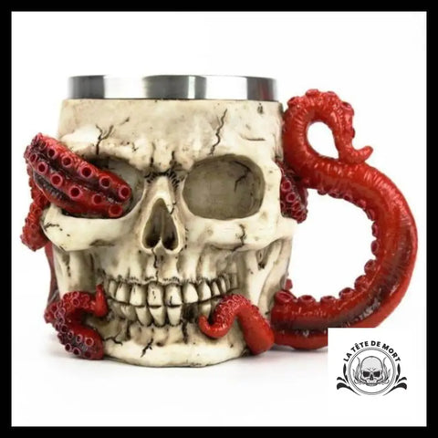 Cette habitation insolite semble être le territoire d'une pieuvre rouge sang, qui semble avoir peut-être aspiré le crâne d'un malheureux. Si vous recherchez une tasse au design unique et sanglant, ce mug pieuvre est fait pour vous ! Sa saveur sanguinaire vous garantit une expérience mémorable.
