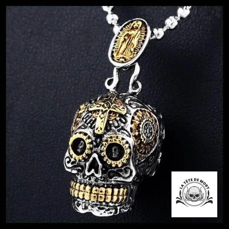Collier Tête de Mort Crâne Dore