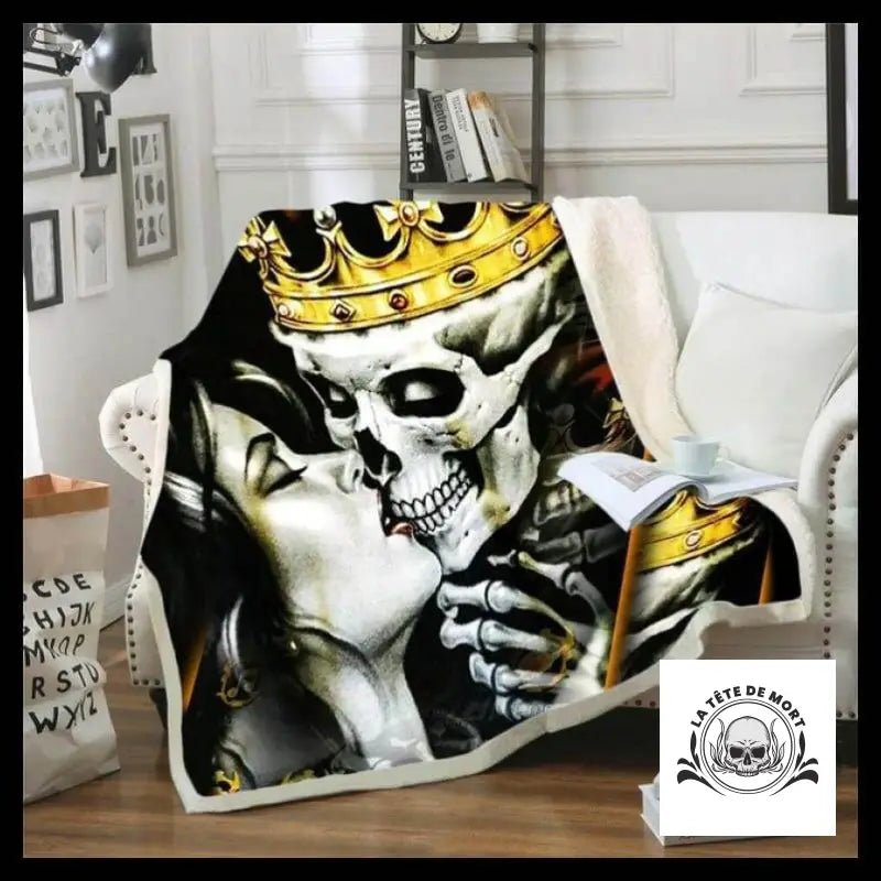 Profitez d'un hiver douillet avec ce splendide plaid orné d'un crâne couronné affichant un look skull unique. Parfait pour ajouter une touche de style à votre intérieur !