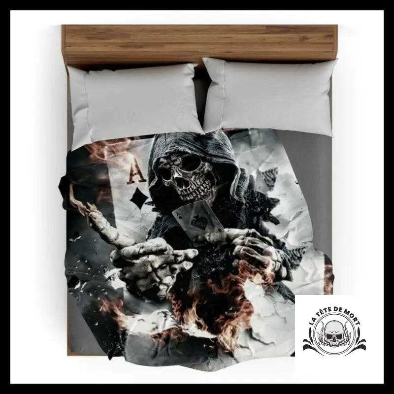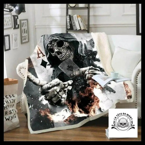 Restez au chaud et à l'abri des maladies hivernales avec ce plaid unique en son genre. Arborant un design diabolique de faucheuse de l'enfer, cet acolyte deviendra votre compagnon parfait pour les soirées froides. Obtenez un style unique et sinistre avec ce plaid qui ne manquera pas de faire sensation dans votre intérieur.