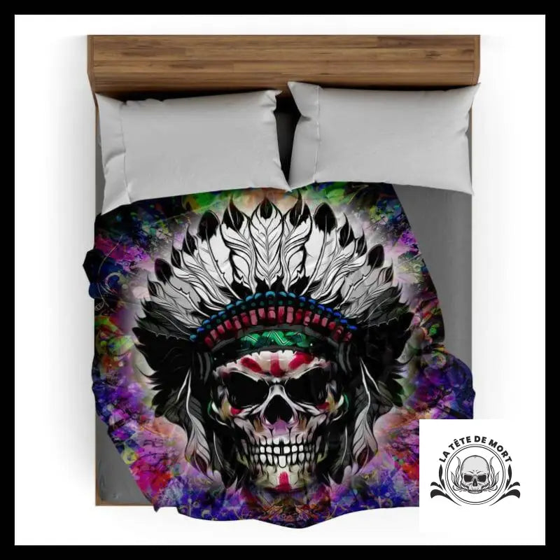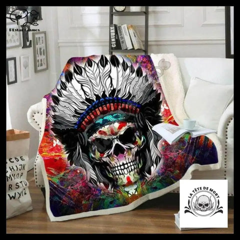 Restez bien au chaud pendant l'hiver grâce à ce superbe plaid d'inspiration indienne orné d'un motif mortel de chef apache. Ce plaid est parfait pour vous garder confortable et élégant en même temps.