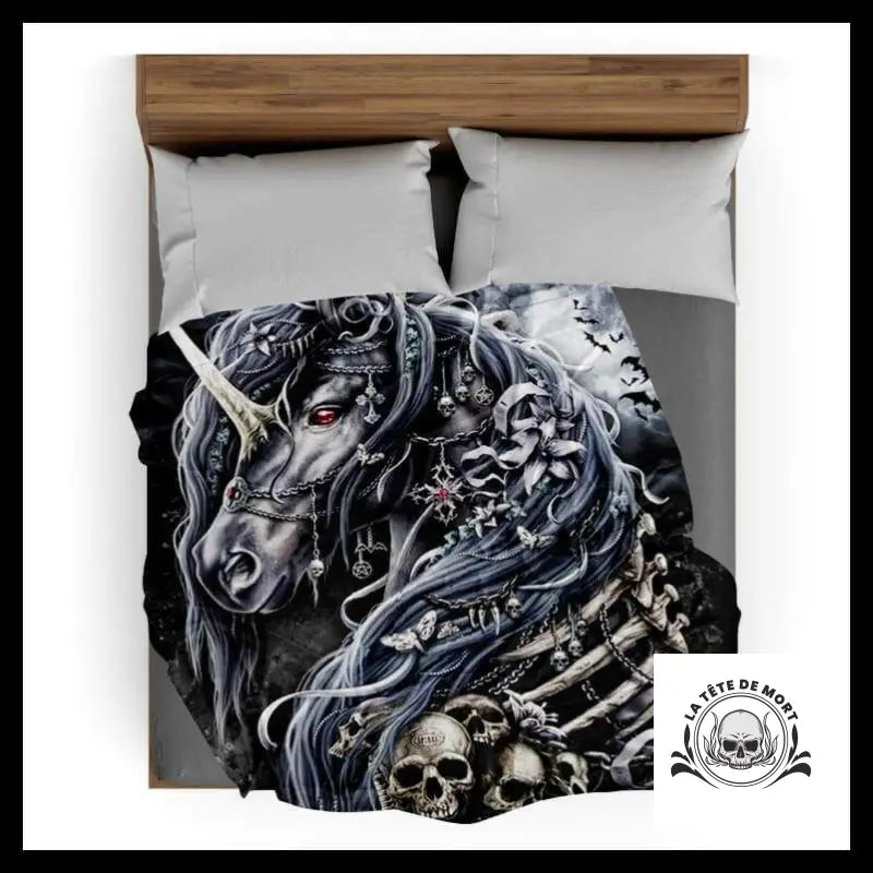 Profitez de l'hiver bien au chaud avec ce superbe plaid licorne qui présente un design élégant mettant en vedette une licorne sombre. Ce plaid est parfait pour ajouter une touche de style à votre décoration intérieure.