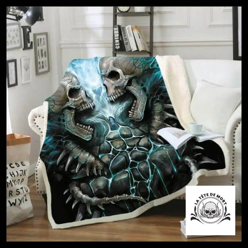 Reste bien au chaud cet hiver grâce à ce magnifique plaid tête de mort démoniaque arborant un design unique de deux démons en lutte. Cet accessoire est le compagnon idéal pour toi.