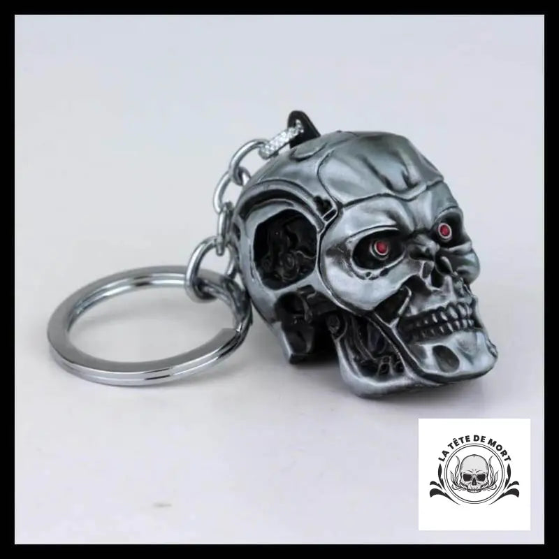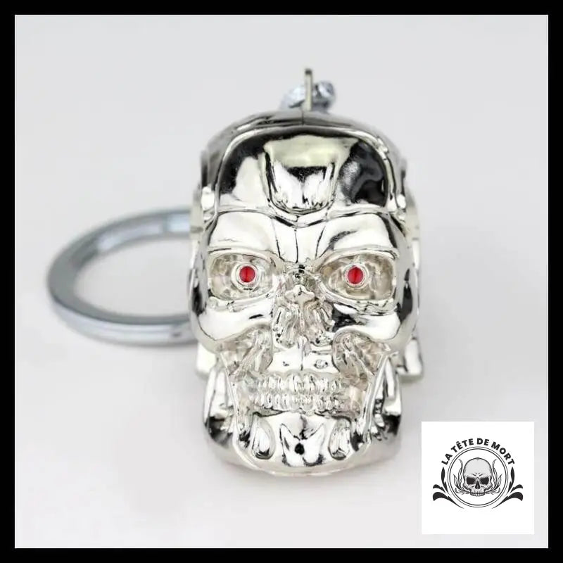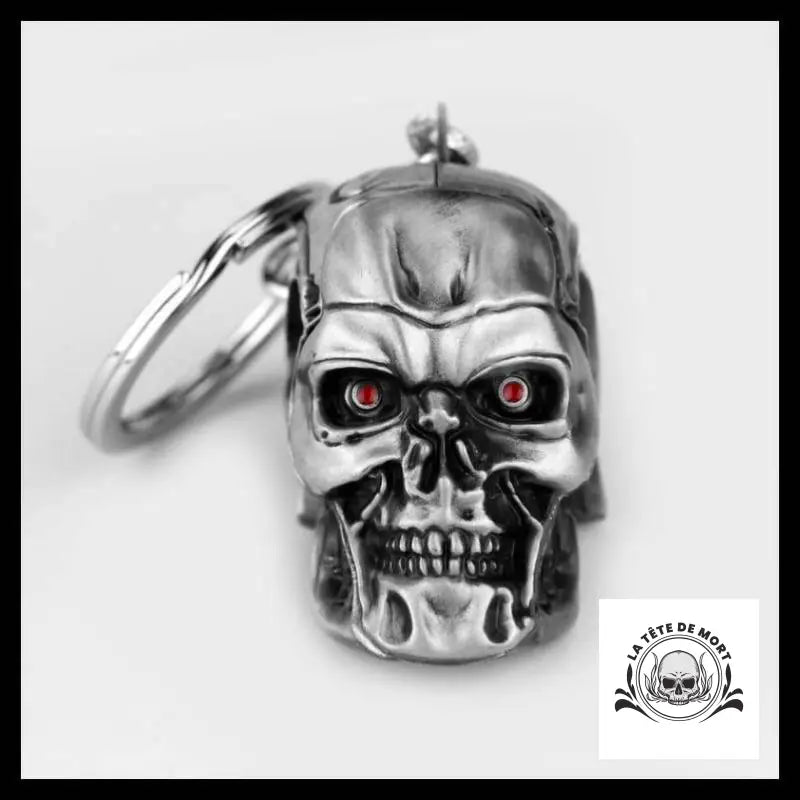 Porte-clé tête de mort aux yeux rouges.