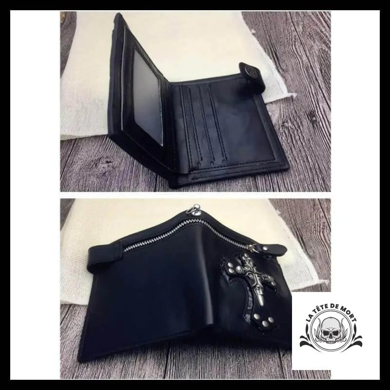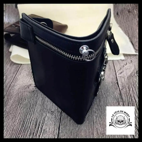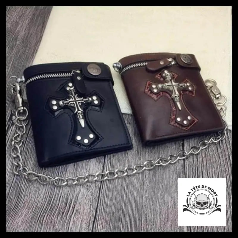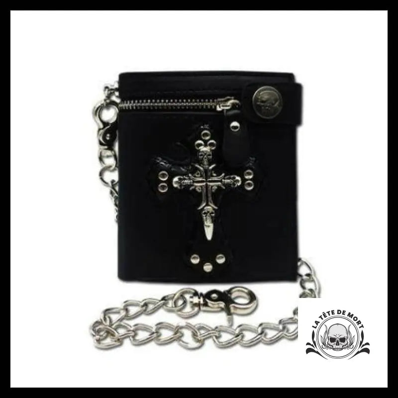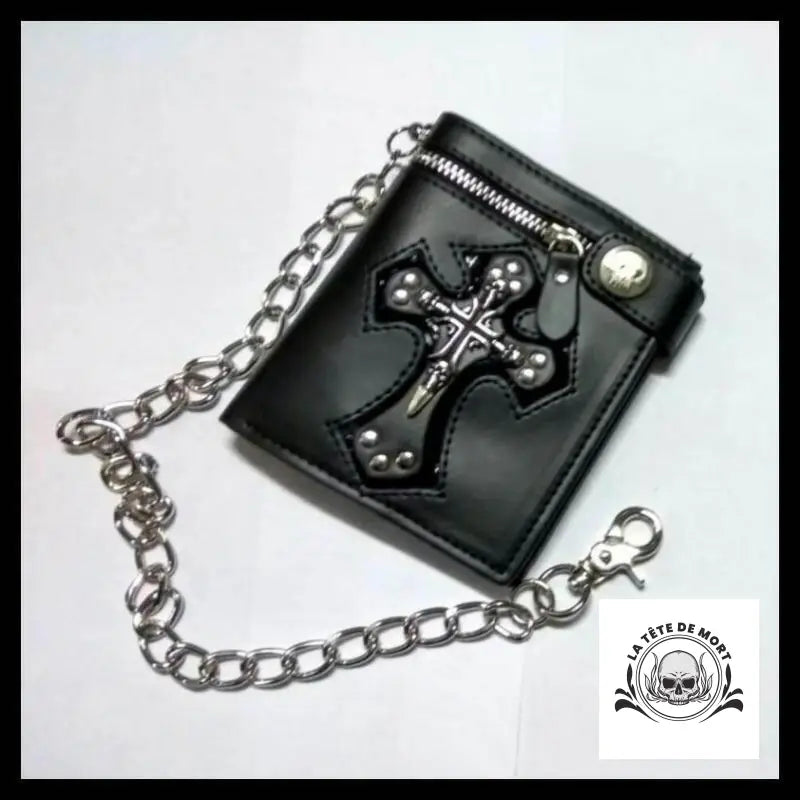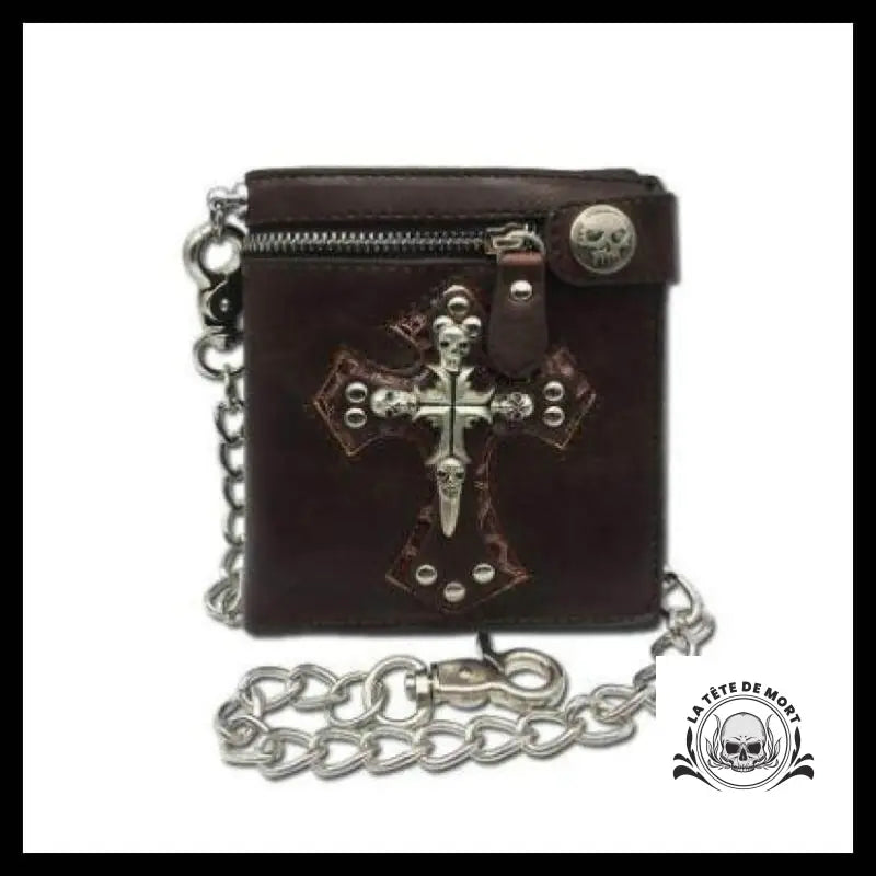 Jeune adepte, viens admirer ce portefeuille en cuir qui t'attend avec sa croix et son crâne. Il est rehaussé par une chaîne qui lui donne un style gothique qui te séduira sans aucun doute.