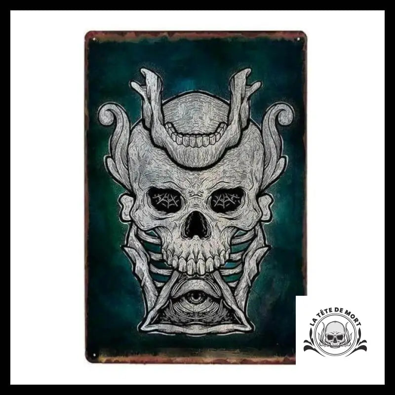 Admirez ce superbe poster Illuminati au design déstructuré aux tons sombres et inquiétants. Sur ce poster, un crâne impitoyable qui semble avoir déjà vaincu deux autres crânes, prêt à être exposé immédiatement !